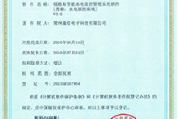 水電聯(lián)控系統(tǒng)軟件證書(shū)